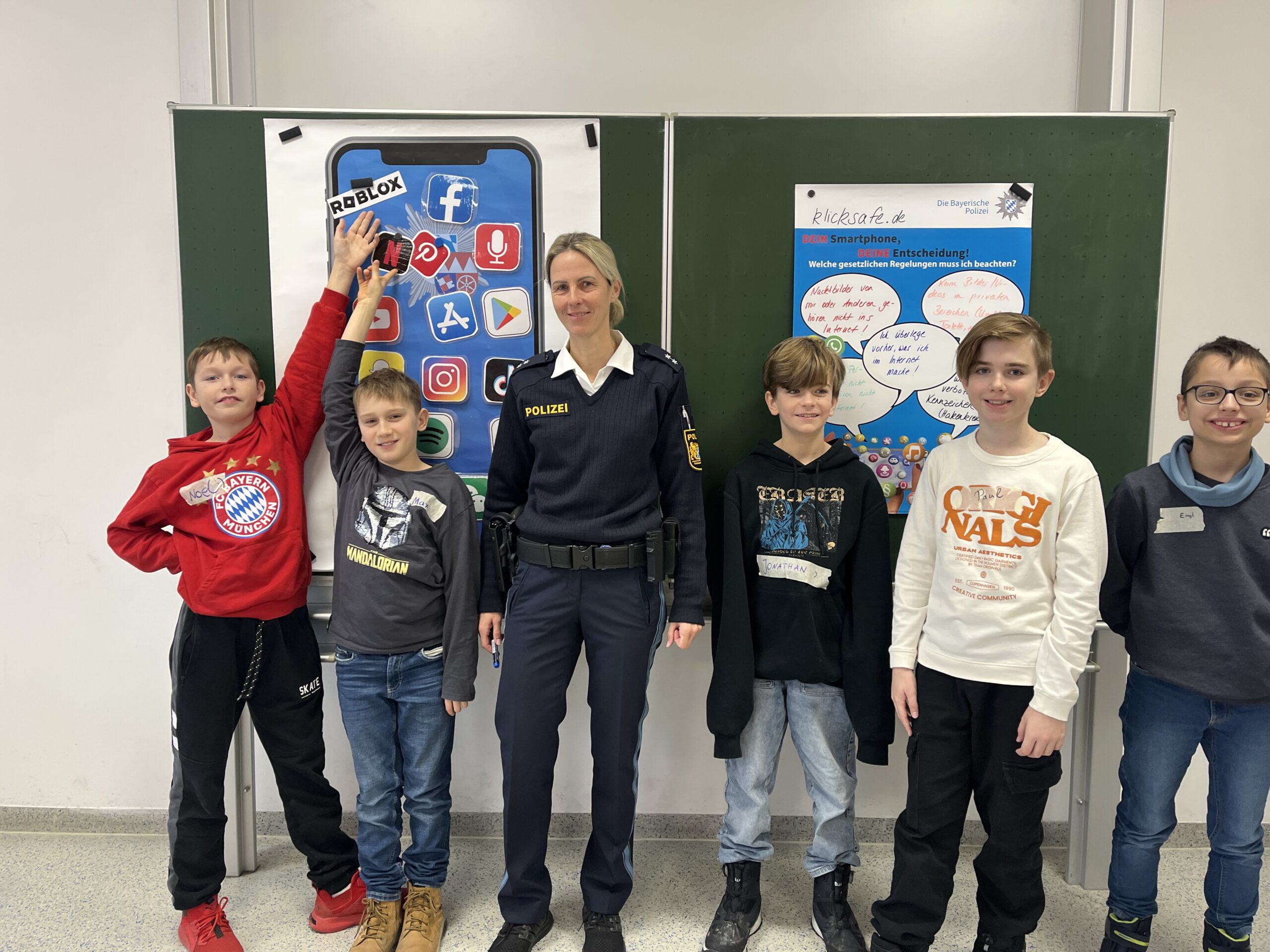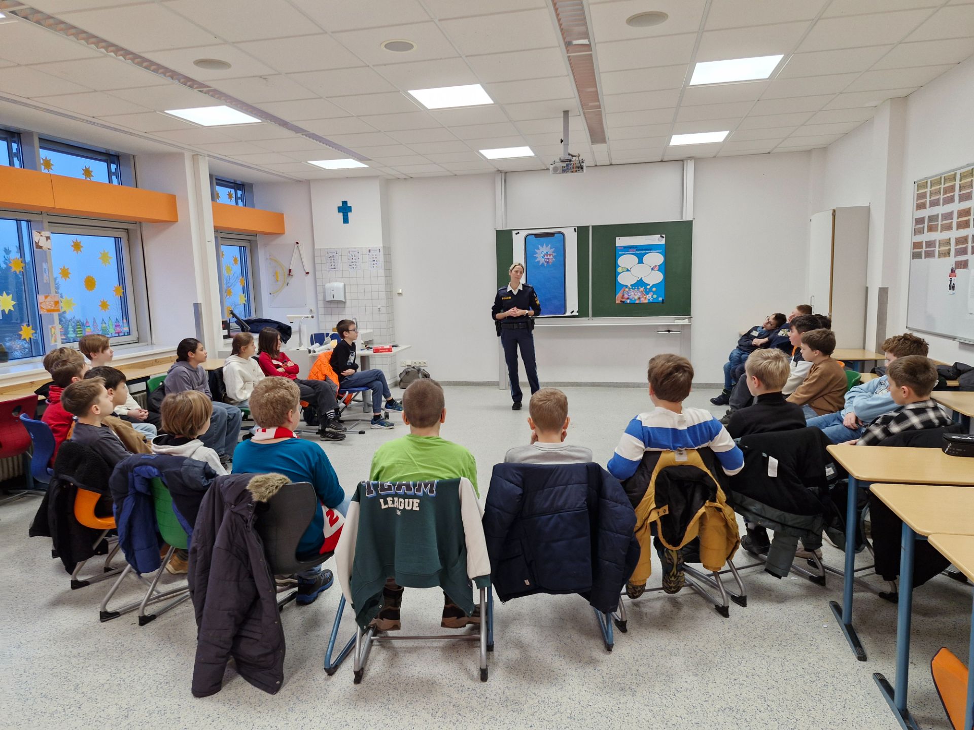 In den Klassen 5abcd fand ein umfassender Präventions-Workshop zum verantwortungsvollen Umgang mit dem Smartphone statt. Polizeioberkommissarin Kerstin Maier von der Polizeiinspektion Kitzingen führte die Schülerinnen und Schüler lebendig und praxisnah durch das wichtige Thema „Dein Smartphone – deine Entscheidung“. Im Mittelpunkt standen Fragen, die im Alltag der Kinder eine immer größere Rolle spielen: Welche persönlichen Daten gebe ich preis – und welche besser nicht? Welche Fotos und Nachrichten darf ich verschicken? Welche Rechte haben andere an ihrem Bild? Wie bewege ich mich sicher in sozialen Medien? Besonders eindrucksvoll war der Abschnitt zum Cybermobbing, bei dem Maier erklärte, wie schnell harmlose Späße verletzend werden können und welche Auswirkungen Cybermobbing auf Betroffene hat. Sie betonte auch, dass viele digitale Handlungen – etwa das ungefragte Veröffentlichen von Bildern – rechtliche Konsequenzen haben können. Die Fünftklässler erfuhren, wie sie sich selbst schützen und wie sie handeln können, wenn sie Zeugen oder Betroffene solcher Vorfälle werden. Die Schülerinnen und Schüler beteiligten sich rege, stellten viele Fragen und berichteten aus ihren eigenen Erfahrungen. Der Schulleiter Stefan Wolbert zeigte sich sehr erfreut über den gelungenen Workshop: „Die Kinder lernen hier, verantwortungsvoll und respektvoll mit ihrem Smartphone umzugehen. Diese Informationen sind für ihre digitale Zukunft von großer Bedeutung.“ Der Workshop ist fester Bestandteil der schulischen Präventionsarbeit und soll die Medienkompetenz bereits in den unteren Jahrgangsstufen stärken.