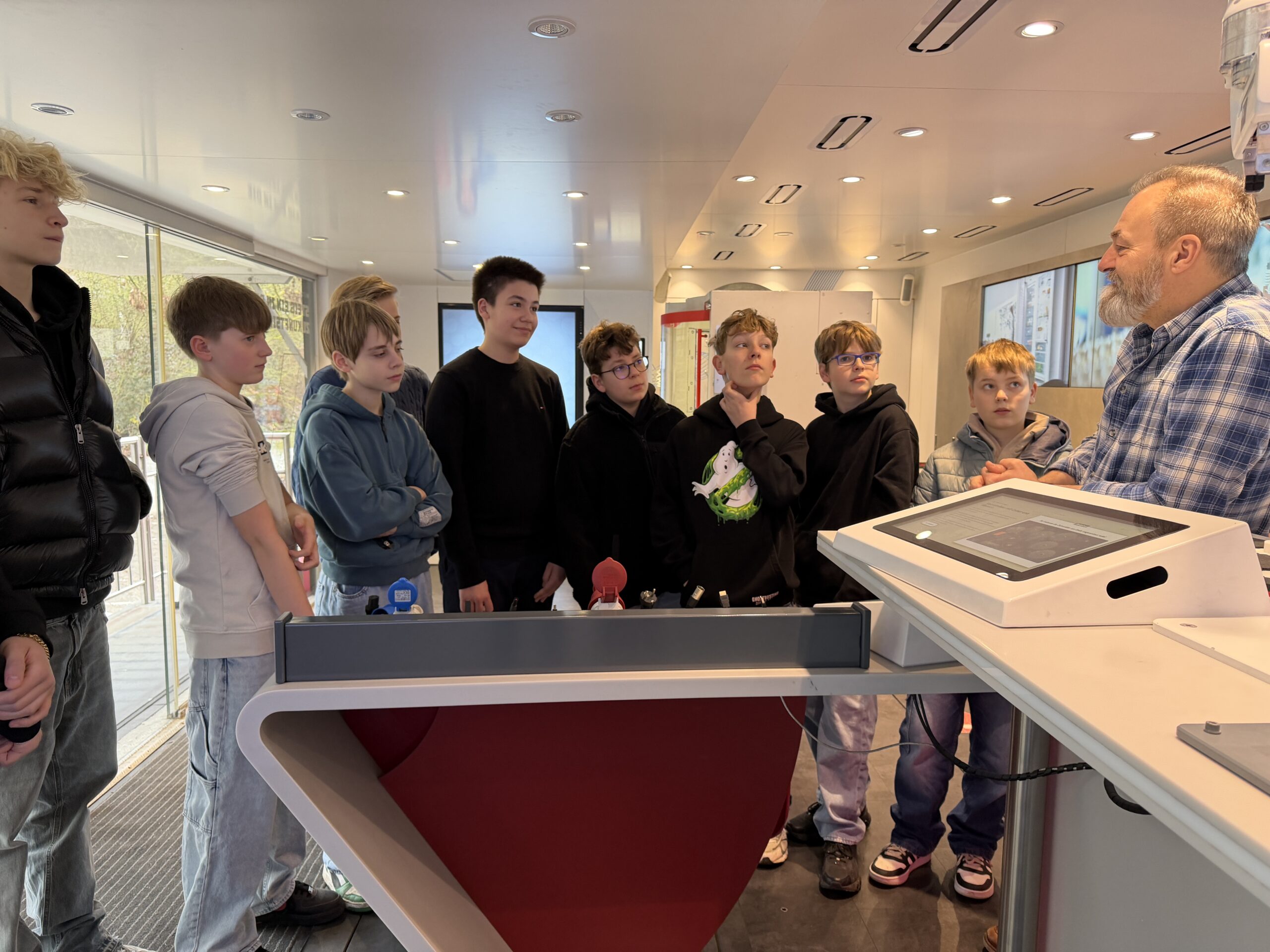 Schon beim Betreten des Trucks wurde klar: Hier geht es um moderne Technik zum Anfassen. Auf ca. 80 Quadratmetern Präsentationsfläche bot das Fahrzeug eine Ausstattung, die keine Wünsche offen ließ. Das Programm war dabei zweigeteilt: