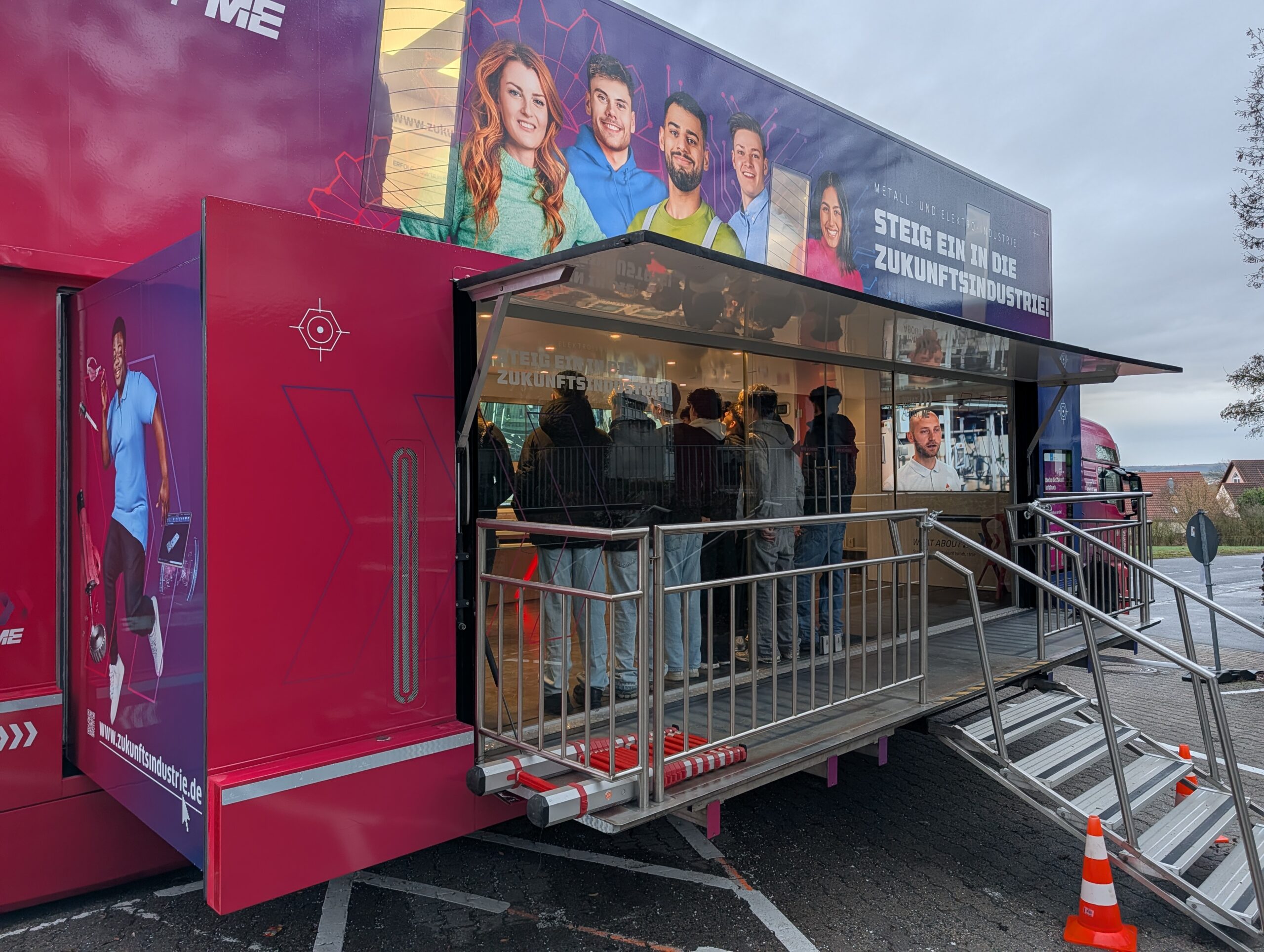 Drei Tage lang stand der beeindruckende „Lernort auf Rädern“ im Zentrum der Berufsorientierung. Für alle Klassen ab der 7. Jahrgangsstufe hieß es: Raus aus dem Klassenzimmer und rein in die Praxis. In 90-minütigen Workshops tauchten die Jugendlichen in die Welt von Deutschlands größtem Industriezweig ein.