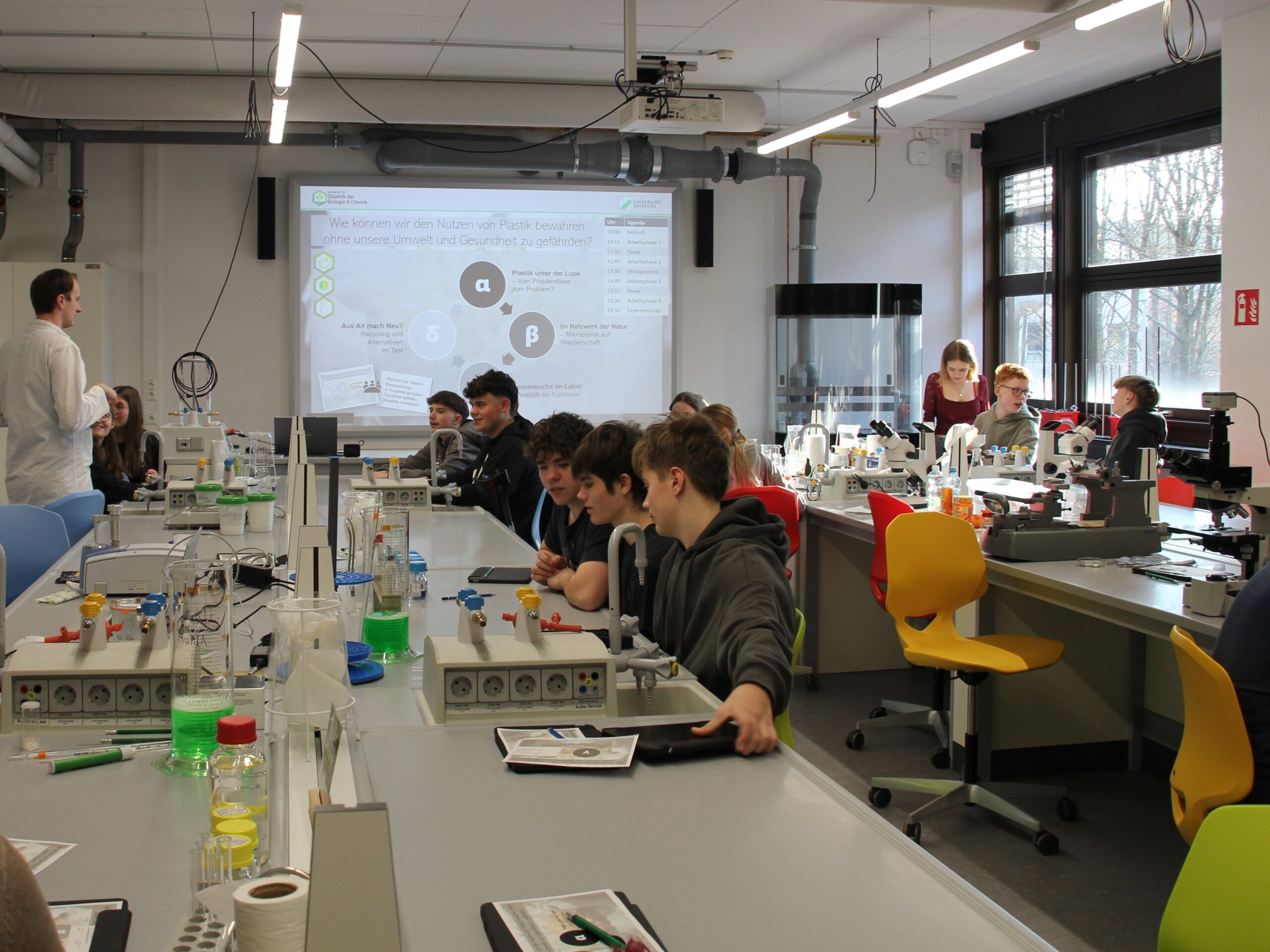 Die Schülerinnen und Schüler arbeiteten mit modernen Analyseverfahren, planten eigene Probenahmen und untersuchten Kunststoffe mithilfe spektroskopischer Methoden. So erhielten sie einen realistischen Einblick in aktuelle Umweltforschung auf universitärem Niveau.