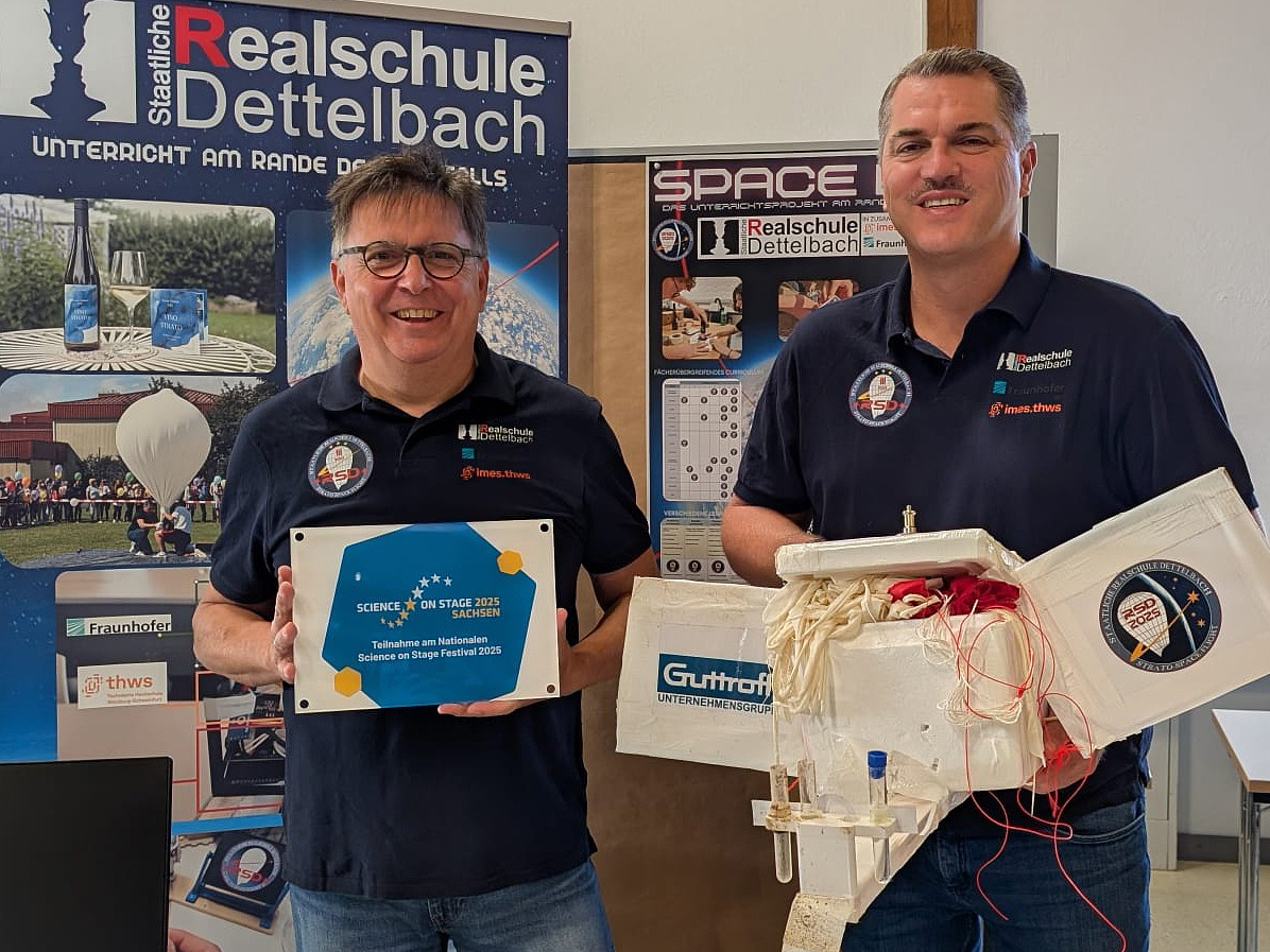 Unsere Schule hat sich mit innovativen und spektakulären Unterrichtsprojekten für das Nationale Science on Stage Festival 2025 qualifiziert. Die Bildungsinitiative fand in diesem Jahr in Radebeul bei Dresden statt und zeichnete bundesweit 45 Schulen aus, die in besonders engagierter und richtungsweisender Form Schülerinnen und Schüler für MINT-Fächer begeistern. Unter den schulartübergreifenden Preisträgern bestach unsere RSD als einzige Realschule Deutschlands. Unterstützt durch das Kultusministerium Sachsen und die Förderung zahlreicher Arbeitgeberverbände und Stiftungen fanden im Tagungszentrum der Sächsischen Wirtschaft vom 26.09. bis 28.09.2025 beeindruckende Präsentationen, Workshops und Vorträge statt, die ein breites Spektrum von unterrichtlichen MINT-Highlights darboten. Mit dem „Unterricht am Rande des Weltalls“ und den schülerzentrierten Messungen im tiefsten Bohrloch der Erde auf 5000 Meter Tiefe, präsentierte unsere Schule außerschulische Lernorte in ihrer beeindruckendsten und spektakulärsten Form. Die zahlreichen Ehrengäste und das Fachpublikum waren sichtlich begeistert von den außergewöhnlichen und kreativen Bildern und Videos aus der Stratosphäre, oder von Schülerinnen und Schülern unter dem Bohrturm in Windischeschenbach. Besonders begehrt waren unsere VR-Brillen, mit denen alle interessierten und schwindelfreien Festivalbesucher selbst die Reise an den Rand des Weltalls antreten konnten. Mit Hilfe einer 360 Grad Kamera haben wir unseren letzten Flug dokumentiert und zu einem Film verarbeitet, der unglaubliche Blicke und virtuelle Perspektiven aus 36.000 Meter Höhe ermöglicht. Im Mittelpunkt aller Festivalbeiträge standen Unterrichtssequenzen, die den MINT-Unterricht zeitgemäß und schülerzentriert gestalten. Es macht uns stolz, dass unsere Realschule dabei sichtlich auf dem richtigen Weg ist, pädagogisch wertvolle Maßstäbe setzt und beim Nationalen Science und Stage Festival 2025 in Dresden überzeugen konnte.