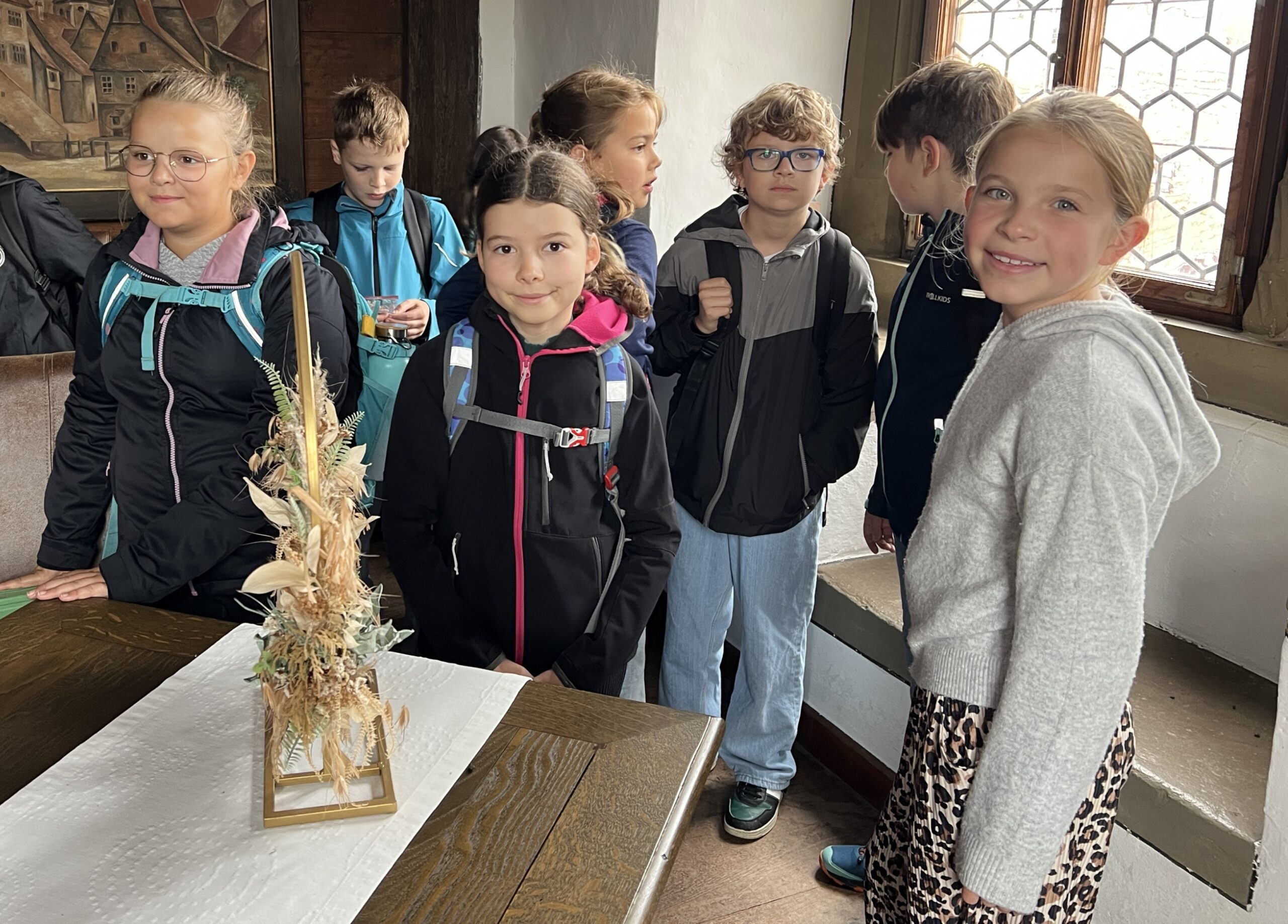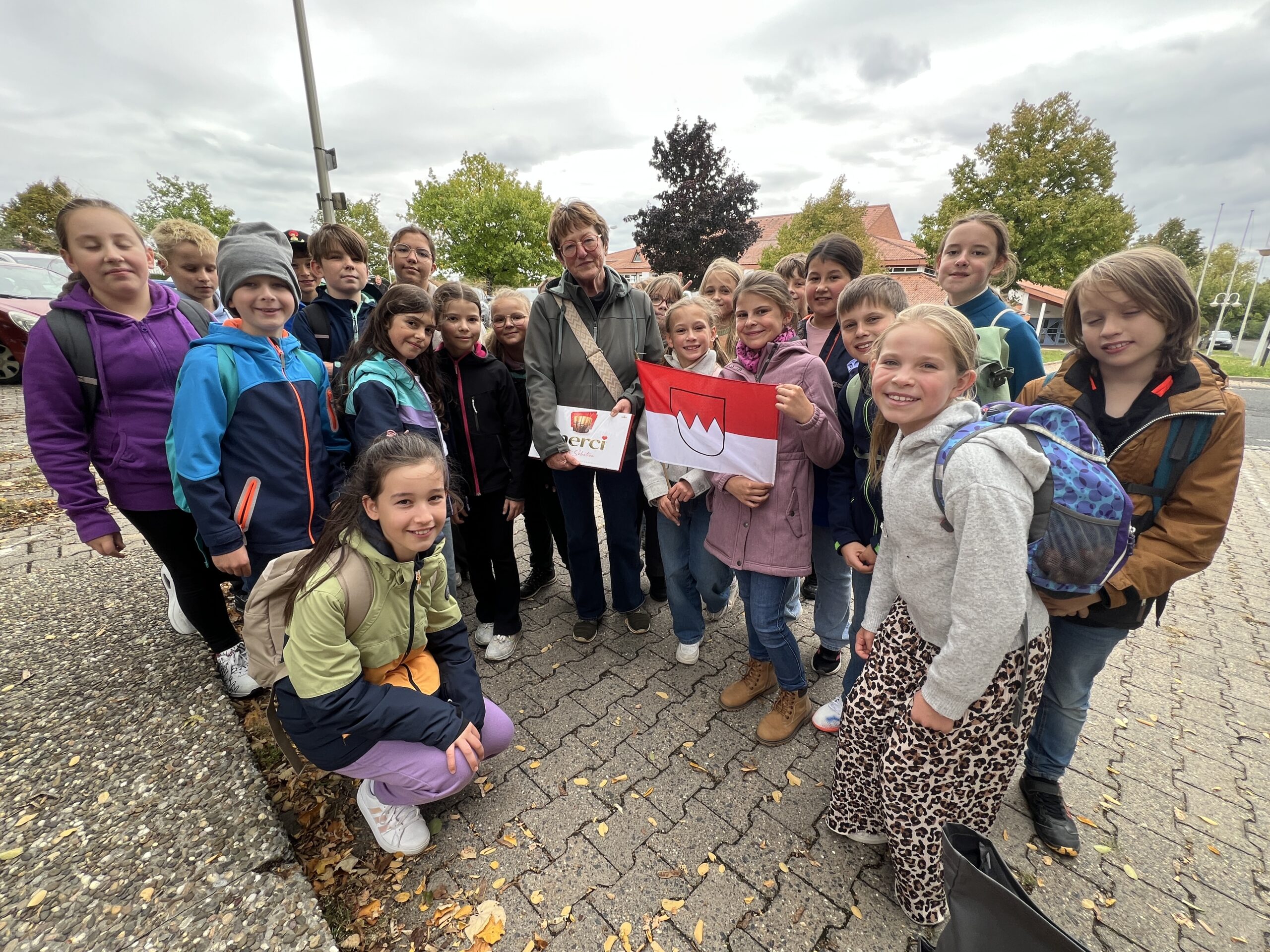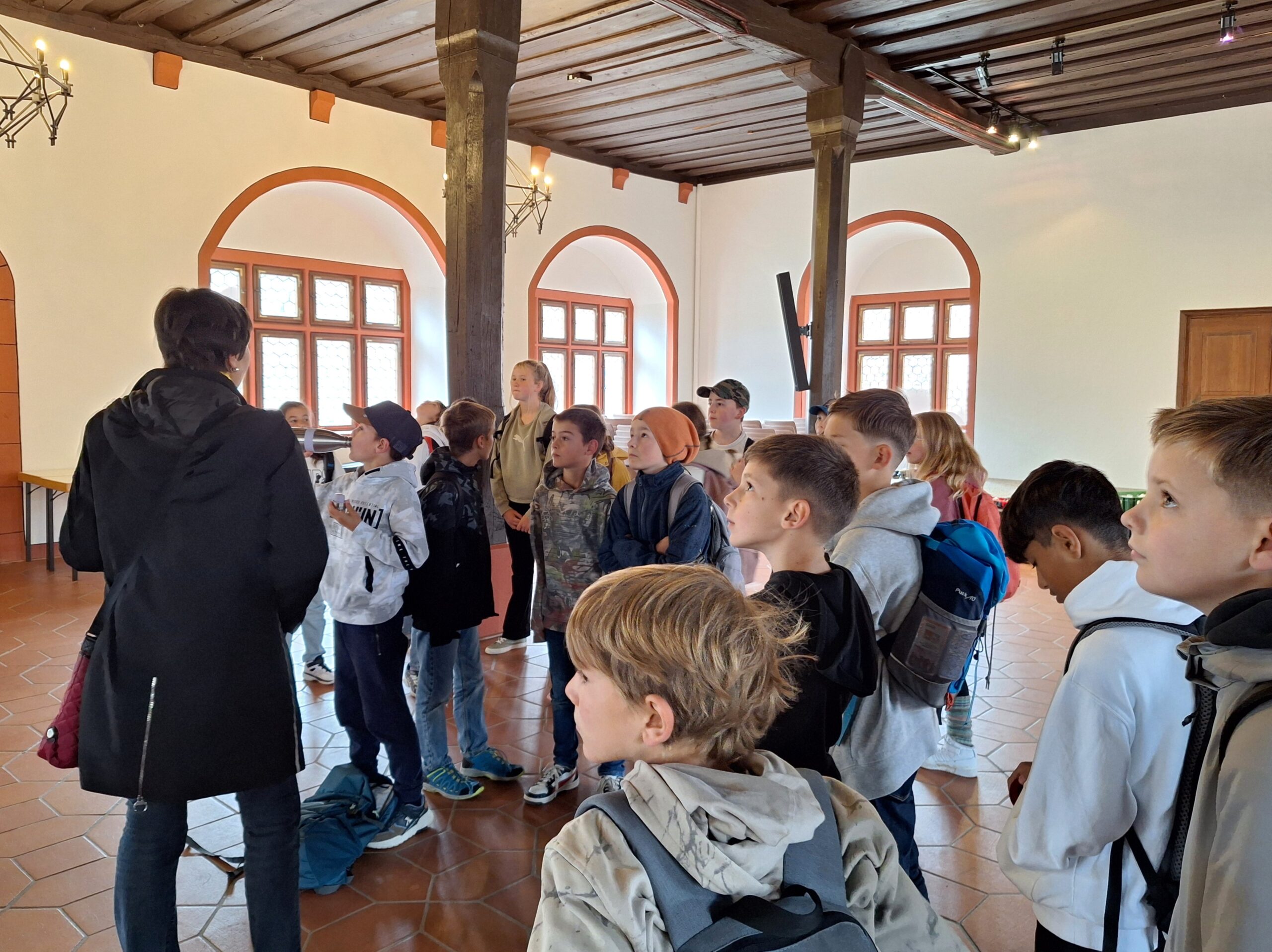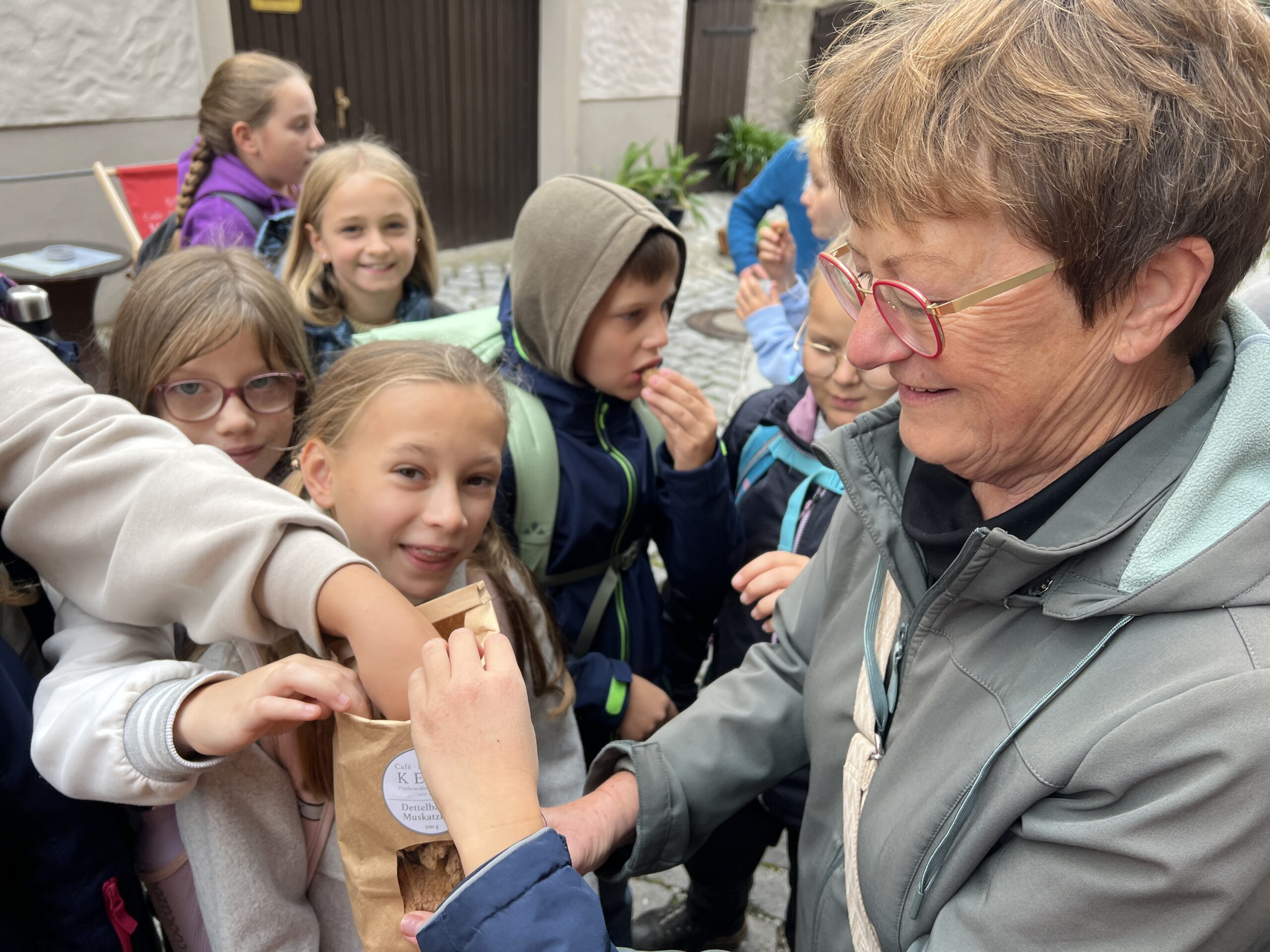 Nachdem die jüngsten Schülerinnen und Schüler an der Realschule Dettelbach bereits das neue Schulhaus erkunden konnten, ging es zu Beginn der zweiten Woche darum, die nähere Umgebung unter die Lupe zu nehmen. Start war an der RSD, hier zogen die 5. Klassen bei herbstlichen Temperaturen unter der Leitung jeweils einer Stadtführerin los. Während des Ausflugs wurde vielen erst bewusst, wie viel Dettelbach zu bieten hat. Es wurde Station gemacht an den drei Kirchen der Stadt, eine Fahrt mit der Fähre über den Main stand auf dem Programm, ein Flößer berichtete lebhaft und begeisternd von seinem Handwerk, das Stadtmuseum im ehemaligen Gefängnisturm wurde besichtigt und zu guter Letzt durften sich alle beim Weingut Apfelbacher über ein Glas Traubensaft freuen. Nach beinahe drei Stunden frischer Luft erreichten die Schülerinnen und Schüler wieder den Ausgangspunkt ihrer ersten Exkursion an der RSD und durften dort die Eindrücke des Vormittags Revue passieren lassen.